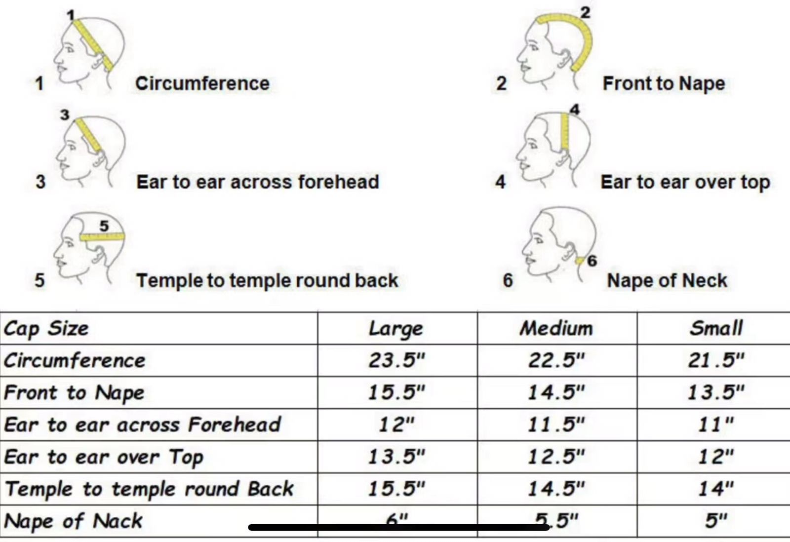 At TBH, our standard cap size is Medium, which measures 22"-22.5". Each wig features